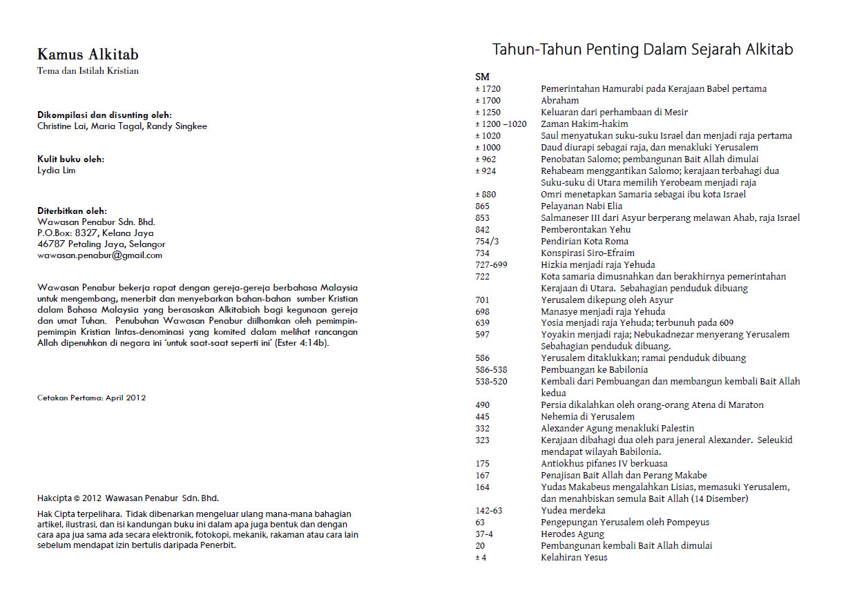 The Alkitab does have some obscure terms which might need further explanation, and with the Kamus Alkitab, most of the more baffling words and Christian terminology are presented in a simple manner.RM6.00